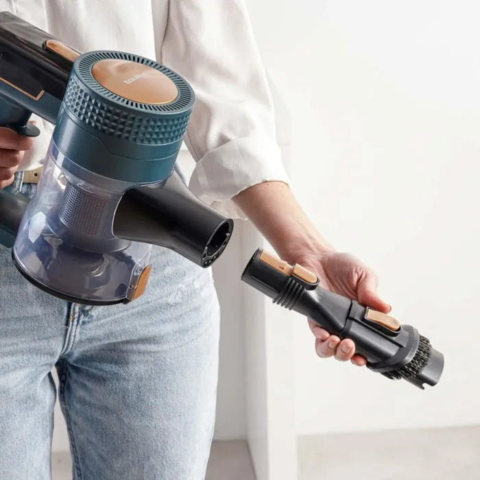 If you are searching for a reliable and efficient way to keep your home clean, look no further than the Stick Vacuum Cleaner Taurus HOMELAND IDEAL. This innovative vacuum cleaner is designed to make your cleaning routine simpler and more efficient. With its sleek blue and black color options, this vacuum not only performs excellently but also enhances the aesthetic of your living space. Its lightweight design ensures that you can maneuver it effortlessly around your home, whether it's on carpets, hardwood floors, or tiles. The absence of a bag means you won't have to worry about the hassle and expense of buying replacements, making it a cost-effective solution for maintaining a clean environment.
