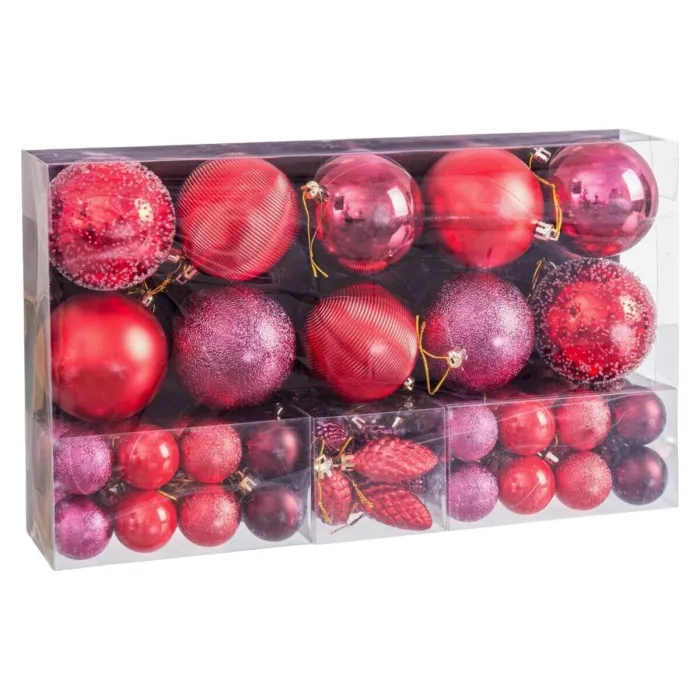 If you want to add a touch of originality to your home, you will do so with Christmas Baubles Red Plastic (50 Units). These vibrant red baubles are designed to elevate your holiday decor, creating a festive atmosphere that radiates warmth and cheer. Whether you plan to adorn your Christmas tree, style your living room, or embellish your festive table settings, these baubles offer versatility and charm that seamlessly fit into any seasonal display. Crafted from durable plastic, they promise longevity and resistance to breakage, making them an ideal choice for households with children or pets.