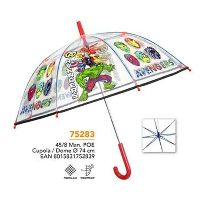 Introducing the Umbrella The Avengers Perletti Transparent Fibreglass 74 cm Children's, the perfect accessory for every little superhero! Designed with an eye-catching transparent finish and vibrant multicolour patterns, this umbrella is not just a practical item to shield your child from the rain, but also a stylish statement piece for any young fan of The Avengers. With the iconic characters boldly displayed, your child will be eager to step out into gloomy weather, transforming it into an adventure. It's time to embrace rainy days with enthusiasm, knowing that the storm won't dampen the superhero spirit!