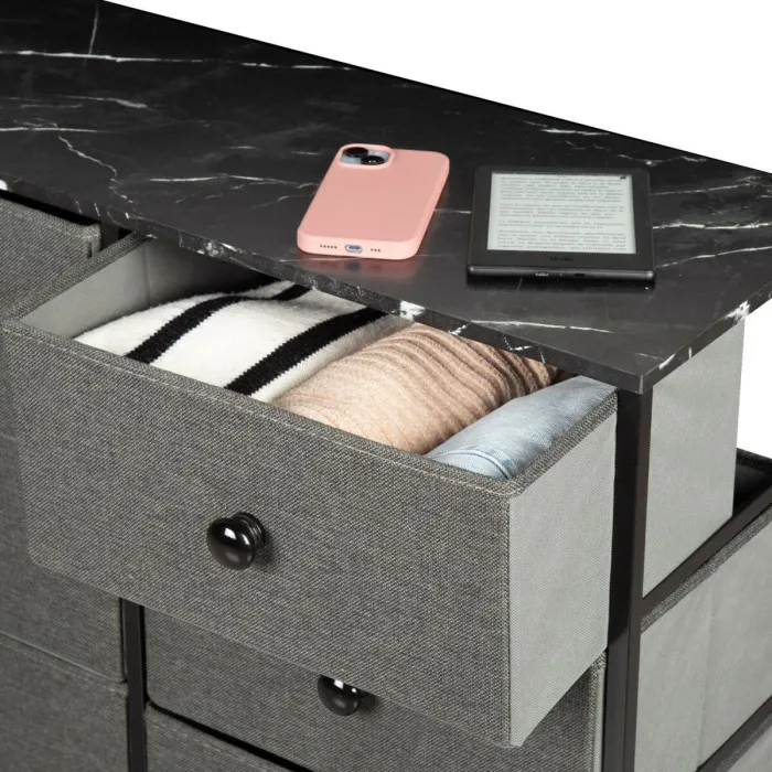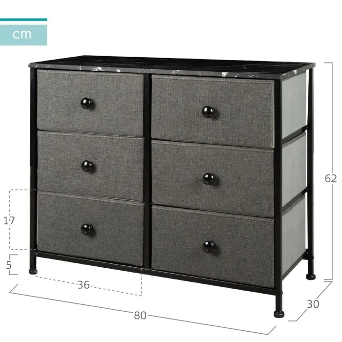 The Chest of drawers Max Home is crafted from a mix of high-quality materials, including polyester, paper, cloth, steel, and MDF wood, ensuring durability and long-lasting performance. With six spacious drawers, this piece provides ample storage for your clothing, accessories, and other essentials, keeping your space organized and clutter-free. Each drawer is designed for easy access, allowing you to effortlessly retrieve your items whenever needed. Its foldable design and easy assembly make it a practical choice for anyone looking to enhance their living space without the hassle of complicated installation.