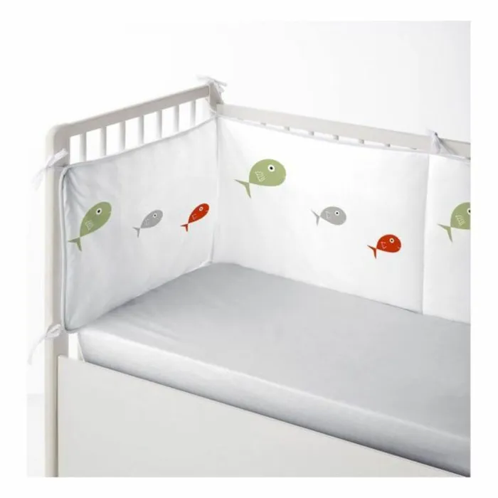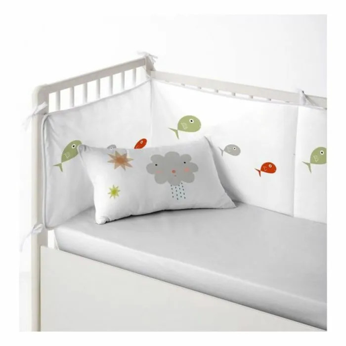 This cot protector is made from 100% cotton, a natural fiber that is both soft to the touch and durable, ensuring it stands up to the daily rigors of childhood. The filling consists of hollow fiber 100% polyester, providing additional comfort and support for your child as they sleep or play. With dimensions of 60 x 60 x 60 + 40 cm, the cot protector is designed to fit perfectly around standard cots, offering ventilation and coziness. This thoughtful design not only protects your child from the hardness of the cot but also acts as a soft barrier, preventing accidental bumps and providing a sense of security.