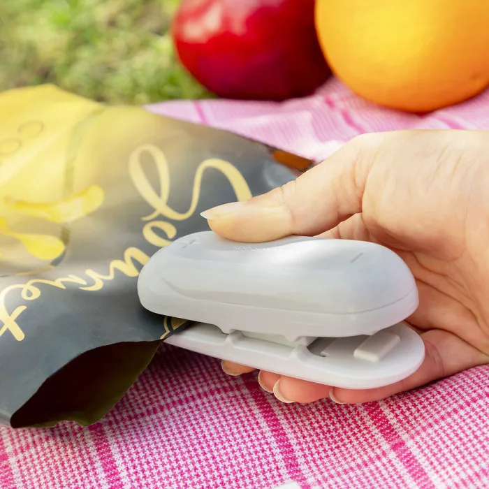 The internal cutter is perfect for cutting and opening bags easily. Simply position and press the end of the bag between the two cutting plates and slowly glide it to cut the desired surface. It also enables you to cut any excess from the bag once you have sealed it.