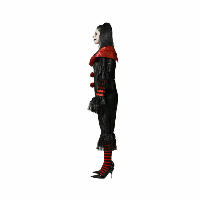 Introducing the Costume for Adults Evil Female Clown, an essential choice for anyone looking to make a lasting impression at their next party or Halloween celebration! This costume combines a chilling aesthetic with a playful twist, making it the perfect outfit for those who dare to embrace their darker side. Crafted from high-quality 100% polyester, you can expect both comfort and durability throughout your event. The striking black and red color scheme enhances the sinister charm of the evil clown theme, ensuring you’ll stand out amongst the crowd. Whether you’re attending a themed party or just want to unleash your inner mischief-maker, this costume is designed to captivate and entertain.