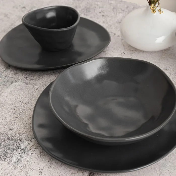 Flat Plate Bidasoa Cosmos Black Ceramic 23 cm (6 Units)