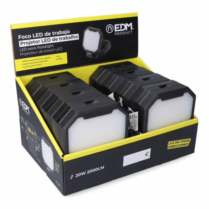 If you are someone who pays attention to every detail in your home, the LED spotlight EDM 3-in-1 20 W 2000 Lm is the perfect addition to your collection of essential gadgets. This versatile lighting solution is designed not just for illumination but also for convenience and practicality. Whether you need a reliable light source for outdoor activities, emergencies, or home repairs, this spotlight meets all your requirements. With a powerful output of 2000 lumens, it ensures that you can see clearly in even the darkest conditions. The cool white light at a colour temperature of 6500 K provides a bright and vibrant environment, making it ideal for various settings such as workshops, camping sites, or even indoor use.