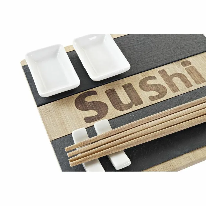 The Sushi Set DKD Home Decor includes everything you need to serve sushi like a pro. With two elegant holders, two plates, a cutting board, and toothpicks, this comprehensive set ensures that you have the essential tools for a memorable dining experience. Each component is designed for optimal usability, making preparation and serving enjoyable and quick. The bamboo material not only provides natural beauty but also guarantees durability, ensuring this set lasts for countless sushi nights. Perfect for entertaining friends or as a special family dinner, owning this set means you'll always be ready for any sushi party!