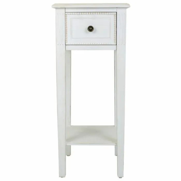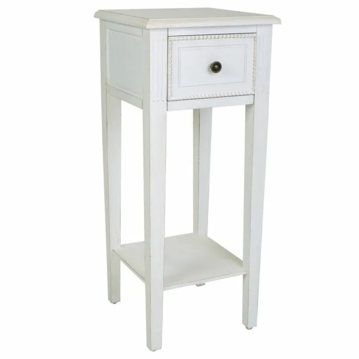 The table is crafted from high-quality materials, including fir wood and MDF wood, ensuring durability and longevity. The white finish adds a fresh and airy feel to your space, making it an ideal addition for anyone looking to create a light and inviting atmosphere. Its compact size, measuring 33 x 78 x 33 cm, makes it versatile enough to fit in tight spaces while still providing ample surface area for placing decorative items, books, or a drink. This side table not only enhances your decor but also offers practical utility, making it a must-have for any home.