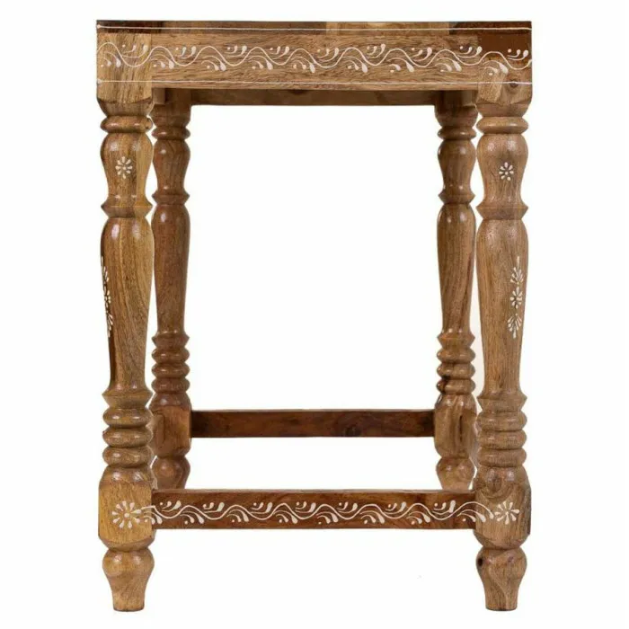 Crafted from high-quality mango wood, this centre table showcases the beautiful natural grain and texture of the material. The vibrant multicoloured finish enhances the inherent beauty of the wood, creating an eye-catching piece that complements a variety of interior styles, from bohemian to contemporary. With dimensions of 33 x 46 x 48 cm, it is ideally sized to fit in smaller spaces without compromising on style or functionality. You can use it as a coffee table, a decorative display surface, or a place to hold snacks and drinks during gatherings.