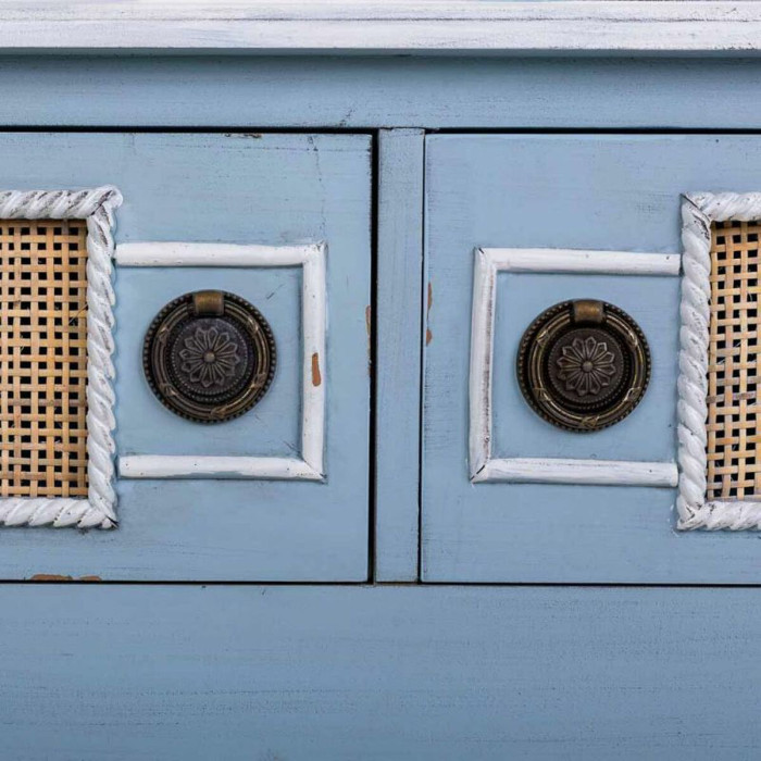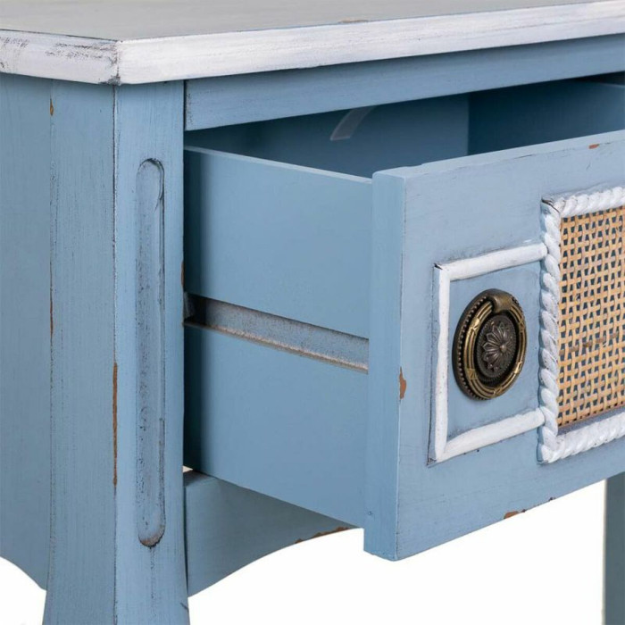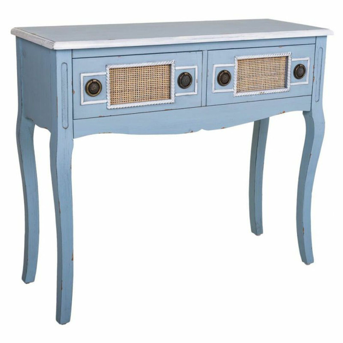 Transform your entryway or living space with the exquisite Hall Table with Drawers Alexandra House Living Blue Rattan Fir wood MDF Wood 33 x 77 x 90 cm. This stunning hall table is more than just a piece of furniture; it's an elegant statement that adds a hint of sophistication to your home decor. The vibrant blue color serves as a striking focal point, effortlessly drawing attention and enriching the overall aesthetic of your surroundings. Crafted from a combination of high-quality materials, including rattan, fir wood, and MDF wood, this hall table not only ensures durability but also embodies an enchanting beauty that complements various interior styles.