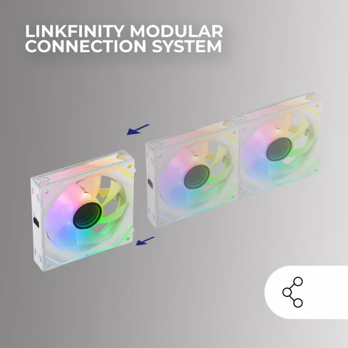 This high-performance ventilator operates at a voltage of 12 V and features advanced LED technology, making it not only effective in maintaining optimal CPU temperatures but also visually captivating. The fan supports two operational speeds, with a maximum of 2000 rpm and a quieter setting at 800 rpm, allowing users to choose the ideal balance between noise and cooling efficiency. With a compact design measuring approximately 12 x 12 cm and a diameter of Ø 12 cm, the MFLINKFINITYW can fit into a myriad of cases, offering flexibility for different computer configurations.