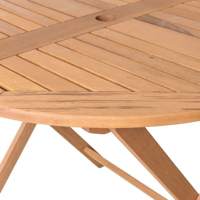 If you want to add a touch of originality to your home, you will do so with Folding Side Table Kate 90 x 90 x 76 cm Natural Acacia. This beautifully designed piece is not only aesthetically pleasing but also incredibly versatile, making it an ideal addition to any outdoor or indoor space. Crafted from high-quality natural acacia wood, this table showcases the unique grain and texture of the material, bringing warmth and a natural vibe to your environment. Its circular design facilitates smooth interactions and enhances the overall flow of your living space, whether it's on the patio or in your garden.