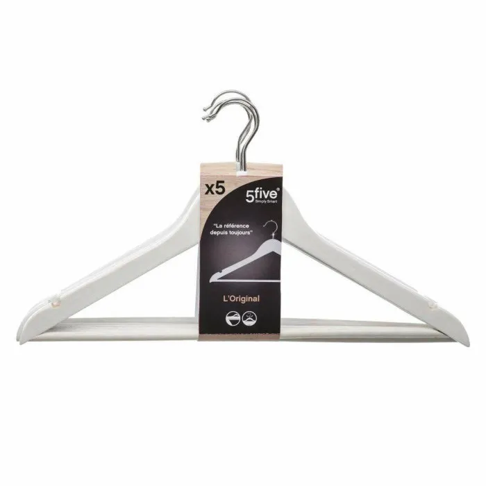 Set of Clothes Hangers 5five Simply Smart White Metal 44,5 x 23,5 x 1,5 cm (5 Units)