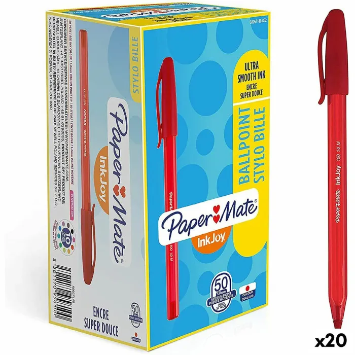 The ergonomic design of the Paper Mate Inkjoy pens means they’re comfortable to hold, even during extended writing sessions. Their reliability and quality make them a must-have in any office supply kit. Beyond their practicality, these pens also elevate the aesthetic of your workspace. With a sleek and modern design, they'll be the envy of your colleagues, sparking conversations and encouraging a collaborative spirit. Don't miss out on the opportunity to enhance your professional toolkit with the Pen Paper Mate Inkjoy 50 Pieces Red 1 mm (20 Units) — the ultimate companion for productivity and creativity in the workplace!