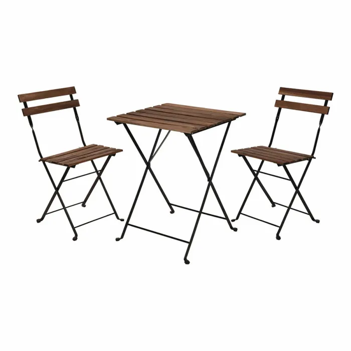 If you want to add a touch of originality to your home, you will do so with Table set with 2 chairs IPAE Progarden Foldable Acacia Black Natural (3 Pieces). This exquisite furniture set is thoughtfully designed to enhance your outdoor experience, offering both style and functionality. The combination of natural acacia wood and a sleek black metal finish not only brings elegance to your garden or balcony but also ensures durability and resistance against the elements. This versatile set is perfect for enjoying morning coffee, hosting an intimate dinner, or simply relaxing with a book in the sun.