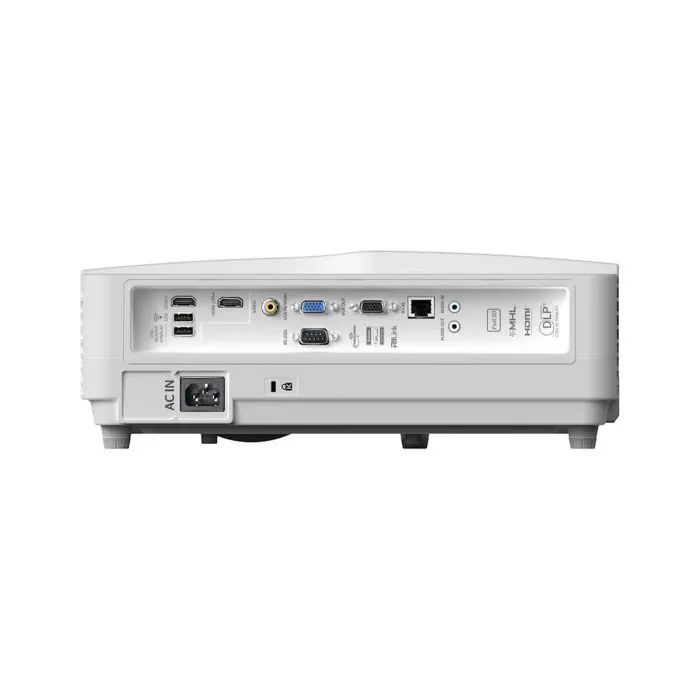 Connectivity options abound with the Optoma W340UST, featuring multiple input ports such as HDMI, USB 2.0, and VGA. This wide range of connections allows users to easily link their laptops, media players, and other devices without the hassle of adapters. Notably, the inclusion of Ethernet LAN and RS 232 connectivity makes it a suitable option for network infrastructures and control systems, broadening its usability in corporate and educational setups. Additionally, the projector is equipped with built-in speakers, facilitating an all-in-one solution for audio and visual presentation needs without the requirement for external speakers.