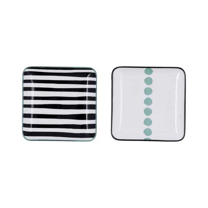 The Snack tray Bidasoa Zigzag Multicolour Ceramic Squared trays come in assorted designs, sent randomly according to stock, adding an element of surprise to your kitchenware collection. Whether you prefer bold hues or soft pastels, these trays are sure to complement any table setting. Perfect for casual gatherings or formal dining occasions, they are a must-have for those who appreciate aesthetics in their home decor. Owning a set not only elevates the presentation of your snacks but also makes a delightful addition to your kitchen essentials.