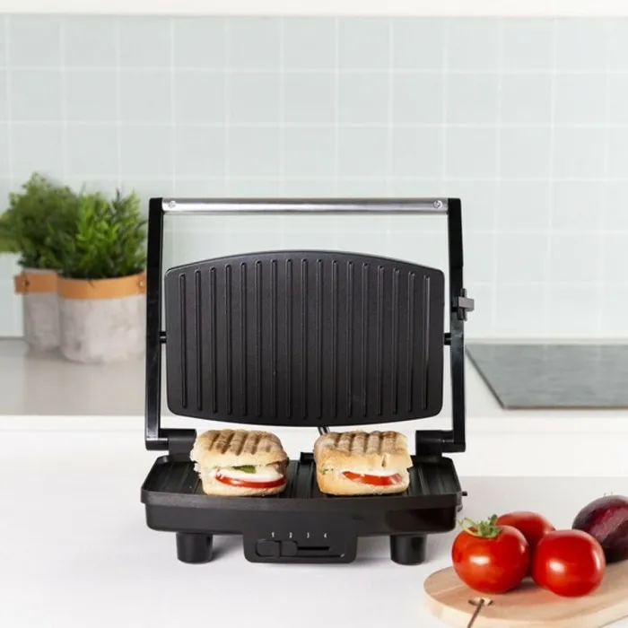 The Contact Grill Tristar GR-2856 is an exceptional kitchen appliance that is designed to elevate your cooking experience to a whole new level. With its sleek black steel finish and compact dimensions of 28 x 19 cm, this grill not only fits perfectly in any kitchen but also adds a touch of modern elegance. Its powerful 1000W motor ensures that you can prepare delicious meals quickly and effortlessly. Whether you're grilling vegetables, meats, or sandwiches, this contact grill provides even cooking, making it an essential tool for any home chef.