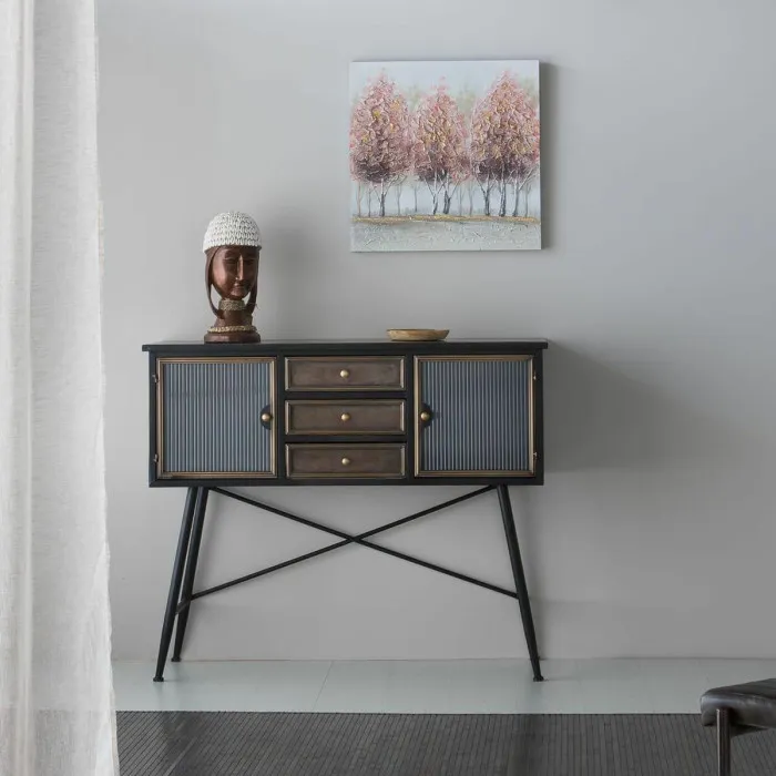 If you want to add a touch of originality to your home, you will do so with Sideboard Alexandra House Living Brown Metal 42 x 100 x 122 cm. This exquisite piece of furniture combines functionality and style, making it a perfect addition to any living space. The elegant brown finish gives it a timeless appeal, suitable for both modern and traditional interiors. Constructed from high-quality metal, this sideboard not only ensures durability but also provides a sleek, polished look that can elevate the decor of your home.