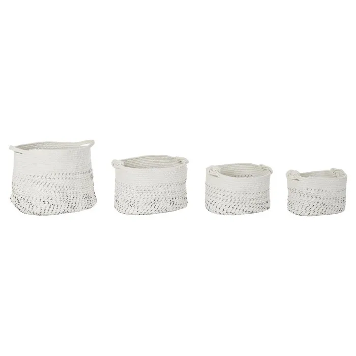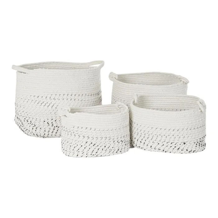 If you're looking to infuse your living space with a sense of creativity and style, the Basket set DKD Home Decor White Black Boho is the perfect addition. Measuring at an approximate size of 36 x 36 x 33 cm, this set comprises four beautifully crafted baskets that seamlessly blend functionality with bohemian flair. Made from high-quality cotton, these baskets showcase a charming white and black design that is both chic and versatile, making them a delightful option for various decor styles ranging from modern minimalist to rustic elegance.