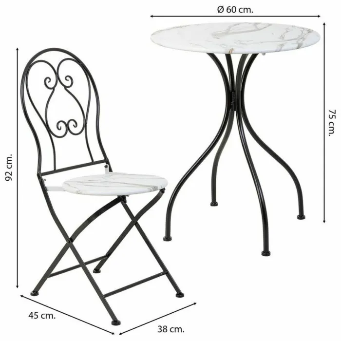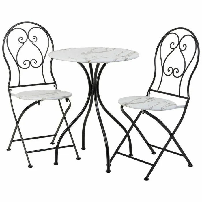 Table set with 2 chairs Alexandra House Living White Black 60 x 75 x 60 cm