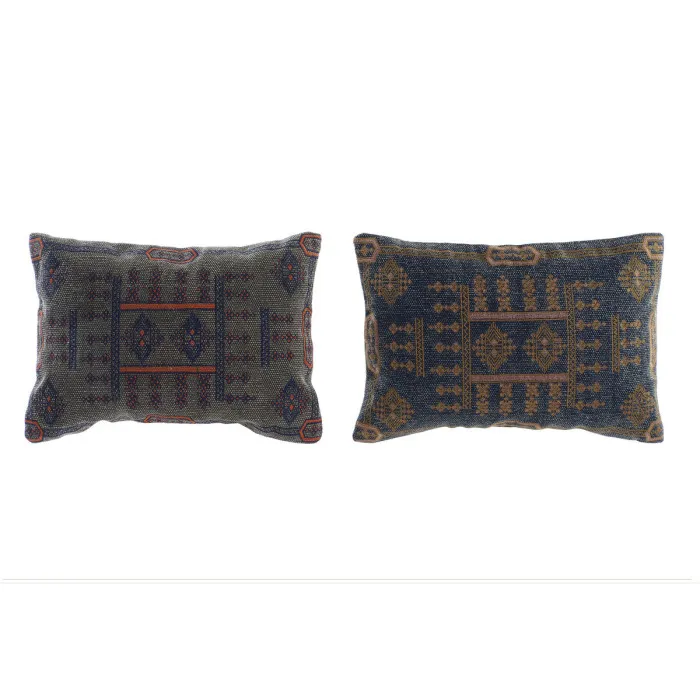 Cushion DKD Home Decor Blue Orange Squared Arab 50 x 10 x 35 cm (2 Units)