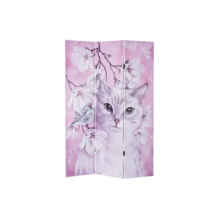 Folding screen DKD Home Decor Cat Canvas 120 x 2,5 x 180 cm Pinewood