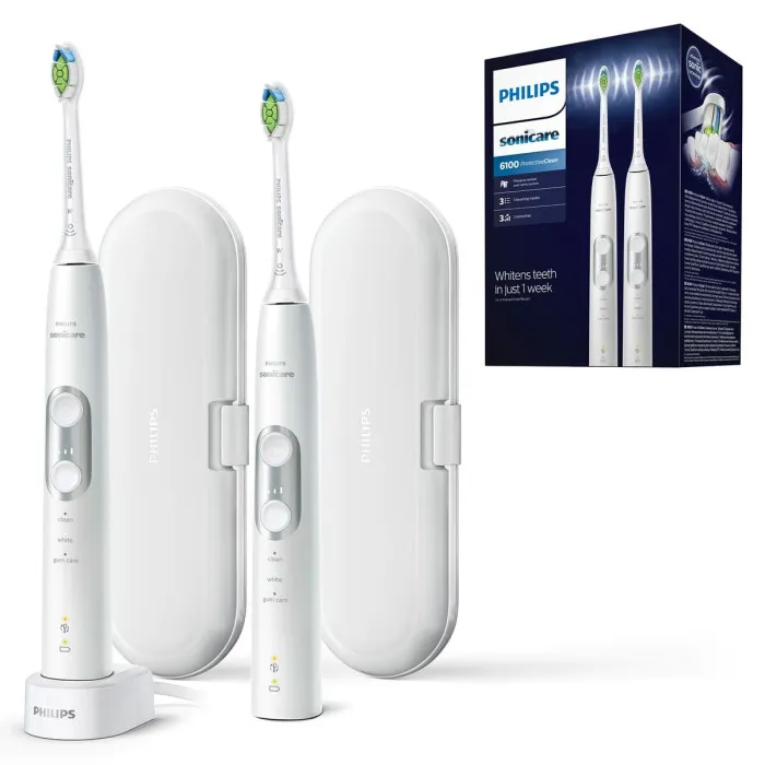 Charging and maintaining your Philips Sonicare 6100 is a breeze with its rechargeable lithium battery that lasts for weeks on a single charge. The included charging base and LED charge indicator ensure that you’ll never run out of power unexpectedly. With the convenience of a travel case and two removable brush heads included, it’s perfect for both home use and on-the-go maintenance, making it an ideal companion for adults seeking to improve their dental care. Choose the Electric Toothbrush Philips Sonicare 6100 ProtectiveClean and take the next step in achieving outstanding oral hygiene and a healthier smile.