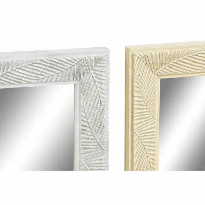 Wall mirror DKD Home Decor Brown Grey Natural Dark grey Tropical Leaf of a plant 56 x 2 x 76 cm (4 Units)