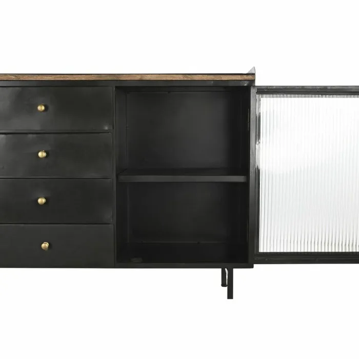 Sideboard DKD Home Decor Natural Black Golden Metal Mango wood (145 x 40 x 85 cm)