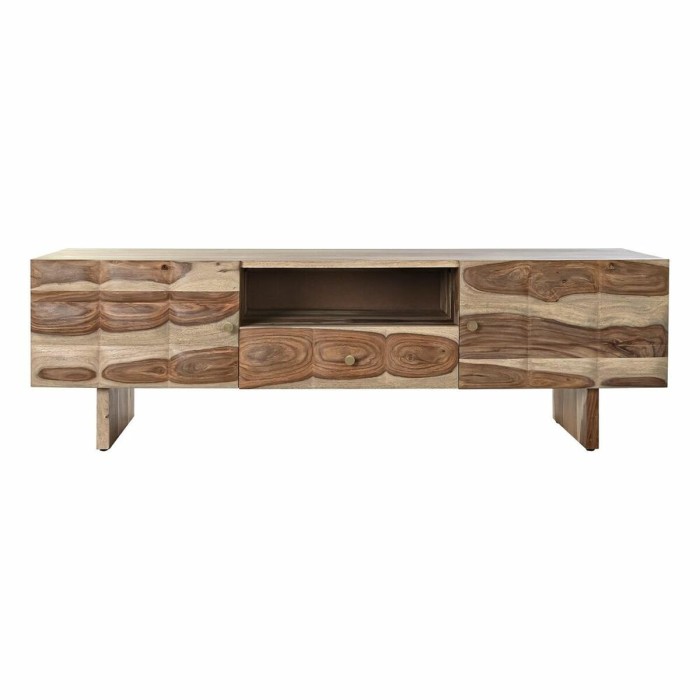If you want to add a touch of originality to your home, you will do so with TV furniture DKD Home Decor Waves Brown Light brown Wood 145 x 45 x 46 cm. This piece of furniture expertly combines style and function, making it the perfect addition to any modern living space. The unique wave design not only enhances the aesthetic appeal of your room but also showcases the natural beauty of wood. The combination of light brown and brown hues brings warmth and elegance, making it a versatile piece that can seamlessly blend with various interior styles, from contemporary to rustic.
