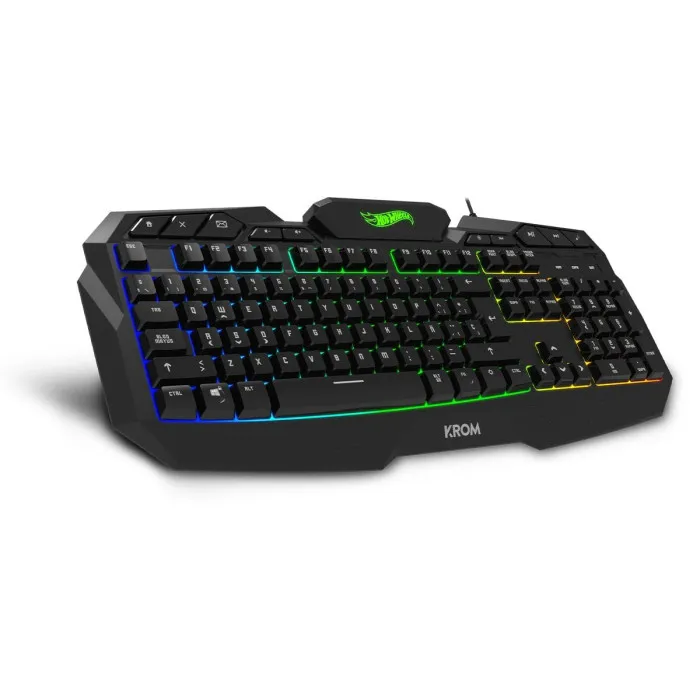 If you're passionate about IT and electronics, the Keyboard with Gaming Mouse Krom HOTWHEELS Spanish Qwerty is the perfect addition to your gaming setup. This meticulously designed package is perfect for gamers who appreciate both aesthetics and functionality. Available in a striking combination of black and blue, this gaming keyboard and mouse set not only enhances your gaming experience but also adds a stylish touch to your workspace. The vibrant RGB lighting and dynamic backlighting create an immersive atmosphere that can elevate your gaming sessions, making you feel fully engrossed in your adventures. The keyboard features a Spanish Qwerty layout, ensuring that you can type and navigate seamlessly without skipping a beat.
