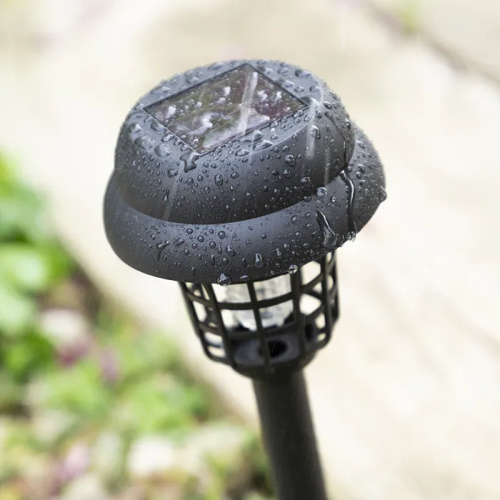 A mosquito-killing solar garden lamp which is very useful and practical thanks to its multifunctional design. It has a battery which recharges using solar energy and enables mosquitoes and other flying insects to be lit up and killedin a clean and eco-friendly way. There are no smells or chemical products so it is not harmful to health and does not pollute the environment (eco-friendly).