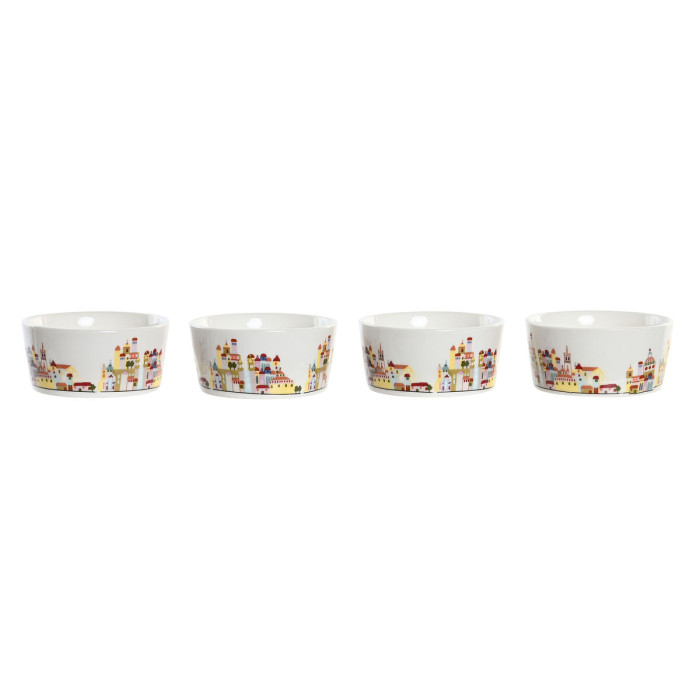 Appetizer Set DKD Home Decor 19,7 x 19,7 x 1 cm Natural Blue Multicolour Stoneware Cottage Houses