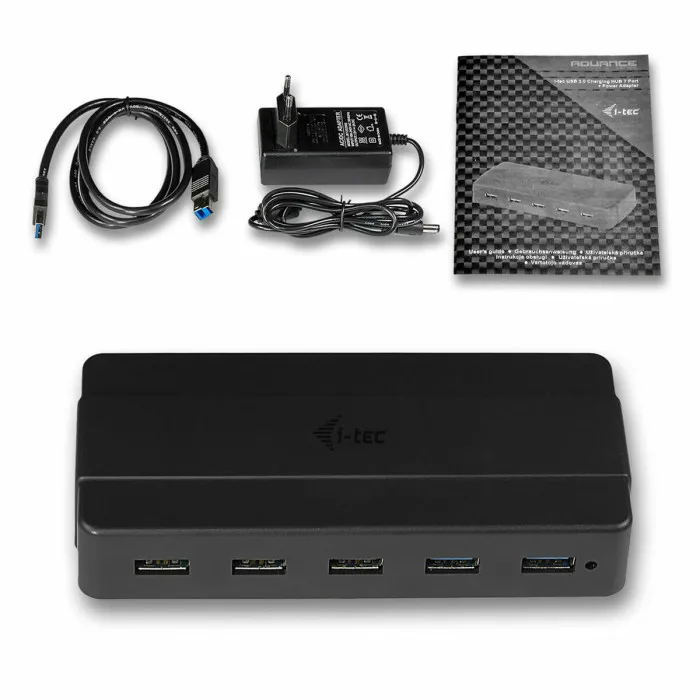 The USB Hub i-Tec U3HUB742 is a must-have accessory for anyone who values connectivity and efficiency in their digital workspace. If you're someone who works with multiple devices and enjoys having everything organized and accessible, this USB hub is designed just for you. With its sleek black design, it seamlessly integrates into any setup, providing not only functional ports but also adding a touch of modern elegance to your workspace. This USB hub boasts a total of 7 ports, which allows you to connect multiple devices at once, ensuring that your peripherals—from external hard drives to printers—are always conveniently at hand.