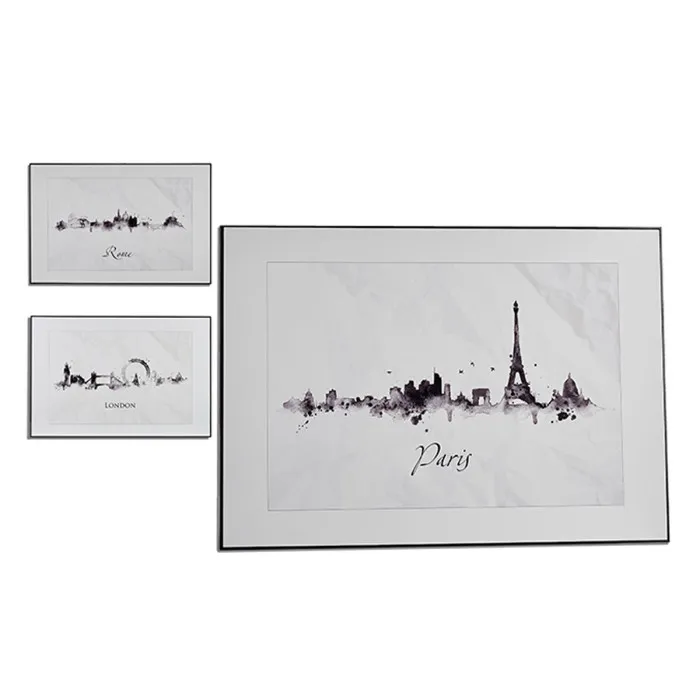 Painting City Black White Particleboard (81,5 x 3 x 121 cm) (3 Units)