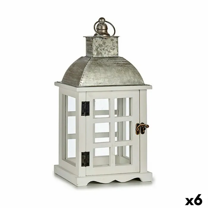 Lantern Silver Metal Wood White (14 x 39,3 x 20 cm) (6 Units)