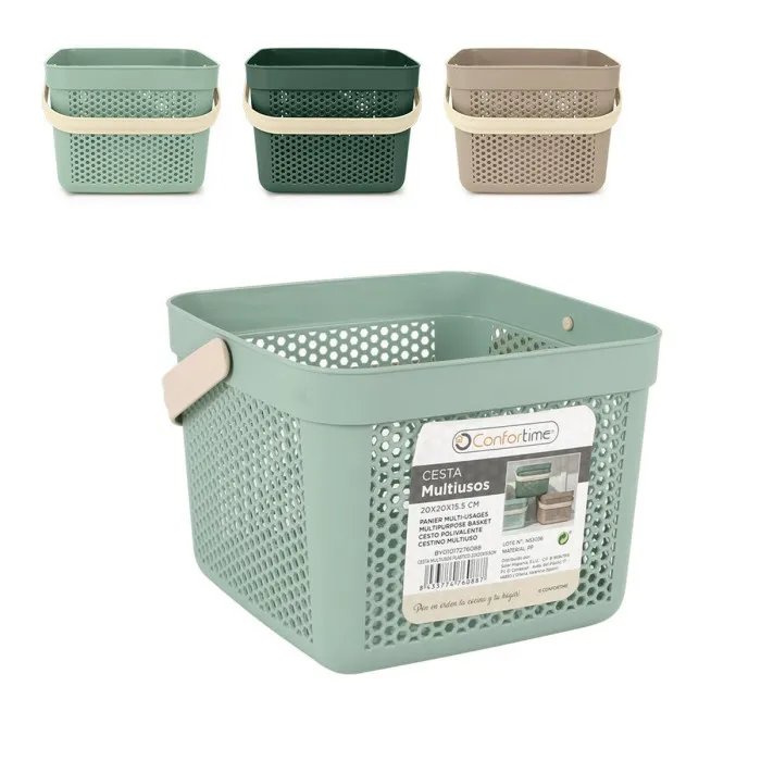 Thanks to their thoughtful dimensions of 20 x 20 x 15,5 cm, the Multi-purpose basket Confortime Plastic can be easily stored in limited spaces, stacking neatly and providing you with clutter-free living. Their lightweight design ensures that you can easily carry them from room to room, making them incredibly user-friendly. Whether you need to hide away clutter or simply prefer to keep items organized, these baskets will help transform any chaotic space into a serene and ordered environment. Invest in convenience and style with this clever storage solution that perfectly aligns with modern home needs.