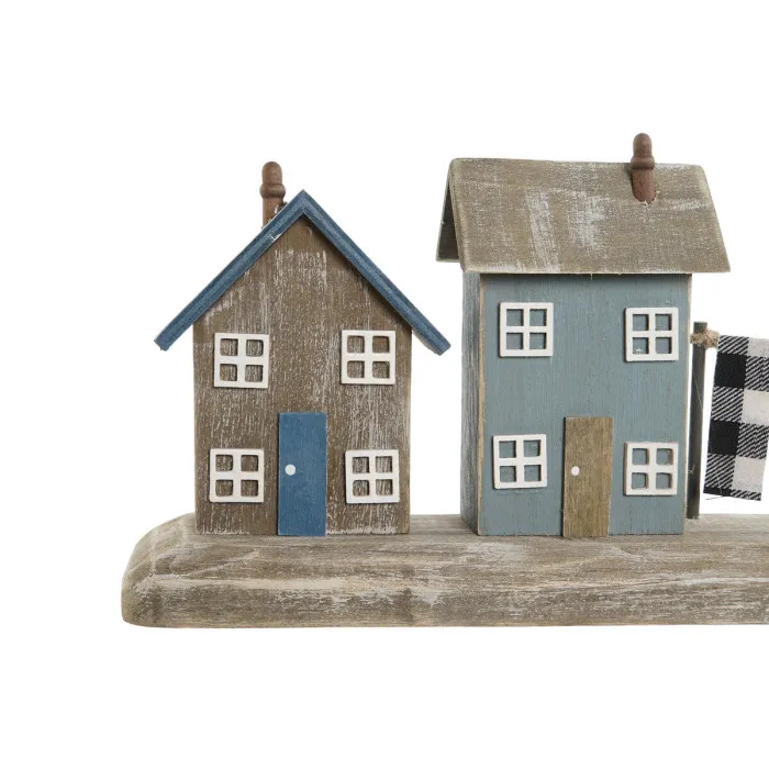Decorative Figure Home ESPRIT Blue Red Multicolour Houses 25,5 x 9 x 13,5 cm (2 Units)