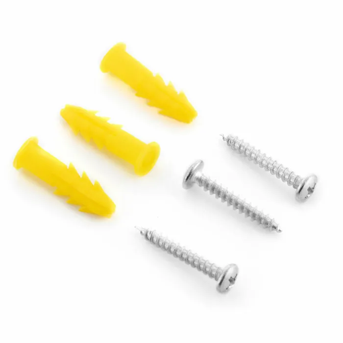 - Includes mounting accessories: Wall plugs and screws (x3 + x3)
