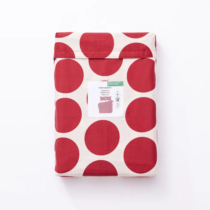 The Bedding set Benetton Red 3 Pieces is made from 100% high-quality cotton, which ensures durability and breathability. Cotton is known for its softness and comfort, making this bedding set an excellent choice for those who prioritize quality sleep. The set includes a nordic duvet cover, a fitted sheet, and a single pillowcase, all designed to fit snugly and securely around your bedding. The thoughtful dimensions of the bottom sheet, duvet cover, and pillowcase make it suitable for various mattress sizes, facilitating a perfect night's rest without the worry of uncomfortable or ill-fitting bedding.
