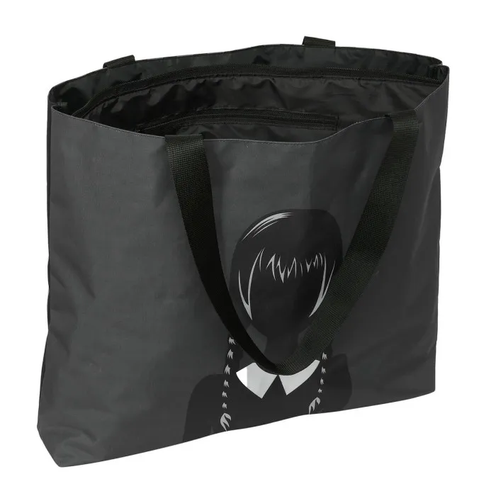 If you're passionate about IT and electronics, the Shopping Bag Wednesday Black 50 x 45 x 10 cm is the perfect companion for your daily adventures. Crafted with a keen eye for functionality and style, this shopping bag amalgamates practicality with contemporary design. The striking black color not only complements any outfit but also makes it an ideal choice for various occasions, whether you're heading to school or out for a casual shopping spree. The spacious dimensions allow you to carry everything you need with ease, while its sleek aesthetic ensures you do so in style.