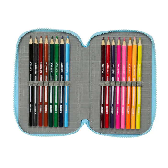 Introducing the Triple Pencil Case Bluey Sky blue 12,5 x 19,5 x 5,5 cm 36 Pieces, designed for those who appreciate both functionality and style when it comes to their school or office supplies. Whether you are a student striving for excellence in your studies or a professional looking to impress your colleagues, this pencil case is the perfect companion that ensures you stay organized. Its vibrant sky blue color adds a touch of freshness to your desk, making it not only a practical item but also a stylish accessory that reflects your personality.