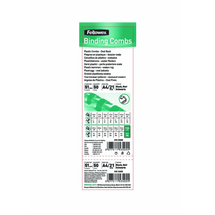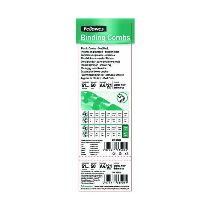 Binding Spirals Fellowes 53505 Black PVC Ø 51 mm