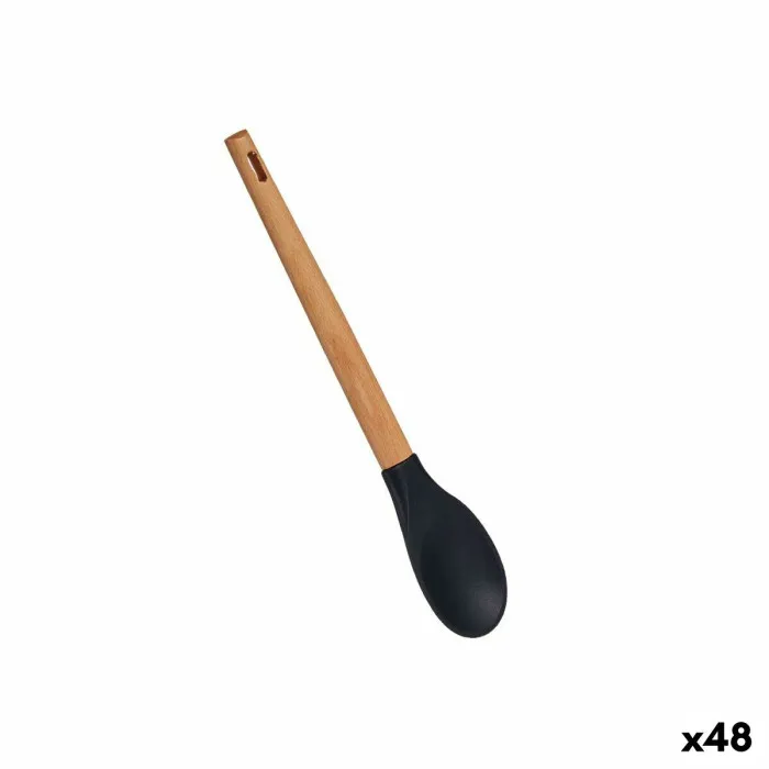 Introducing the Ladle Black Silicone beech wood 6 x 1,8 x 30,5 cm (48 Units), a must-have addition to any modern kitchen. Crafted with precision and designed for both functionality and aesthetic appeal, this ladle combines the flexibility of silicone with the durability of beech wood. Its sleek black color makes it a stylish accessory that enhances your cooking experience while seamlessly blending with your contemporary kitchen decor.