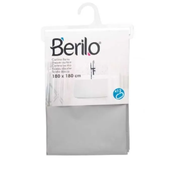 Shower Curtain Berilo SC-MIX-01-GREY Grey Polyethylene EVA 180 x 180 cm (12 Units)