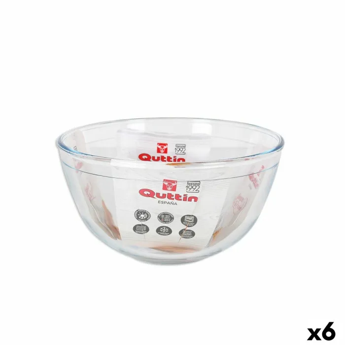 Investing in the Mixing Bowl Quttin Glass ø 21,2 x 11,2 cm (6 Units) guarantees you not only quality but also convenience. With six units in this set, you can manage multiple tasks simultaneously, organizing your workspace effectively. Whether you're preparing a complex meal or simply whipping up a quick dish, having multiple bowls at your disposal helps streamline the cooking process. Enhance your kitchen experience with these sophisticated and practical mixing bowls that perfectly balance style and utility. Elevate your cooking game with Quttin, where every detail matters.
