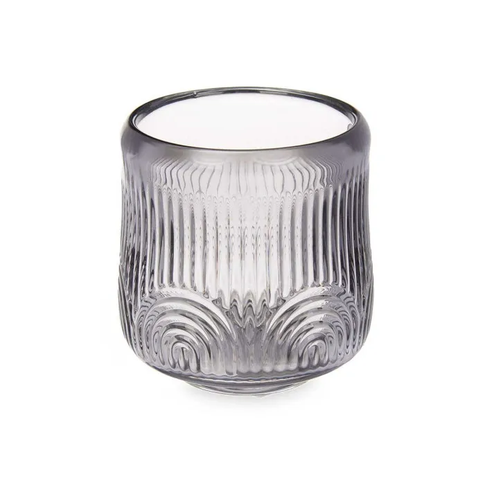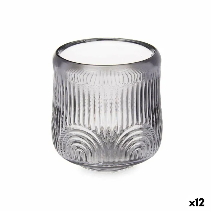 Candleholder Stripes Grey Crystal 9 x 9,5 x 9 cm (12 Units)