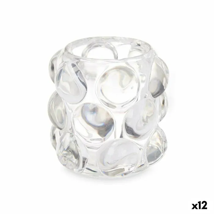 Candleholder Microbeads Transparent Crystal 8,4 x 9 x 8,4 cm (12 Units)