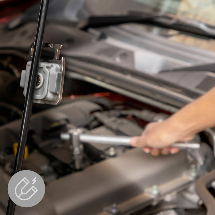 our magnetic mini LED torch has a securing stand on the back with various tilt levels so it can be supported on any surface (tables, desks, etc.) or used to hang it up. Additionally, it also has a small hole in the base to place it in a tripod (not included).