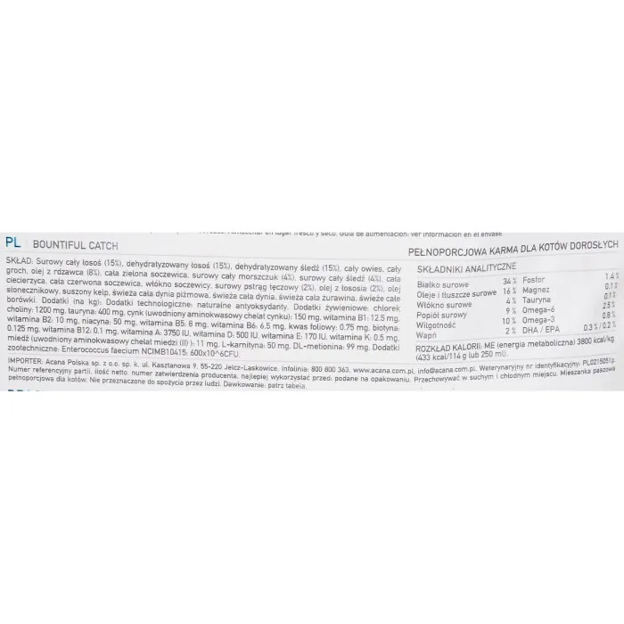 The Cat food Acana Bountiful Catch Adult Salmon 1.8 kg is a premium choice for discerning cat owners who want to ensure their feline companions receive the best nutrition possible. This specially formulated cat food is designed for adult cats, showcasing high-quality ingredients that cater to their specific dietary needs. With an enticing flavor profile that includes salmon, fish, and lamb, this cat food promises to satisfy the palates of even the pickiest eaters. The unique blend of proteins is not only flavorful but also beneficial for maintaining strong muscles and overall health. Each bite provides essential nutrients that support your cat’s active lifestyle while keeping them energized and happy.